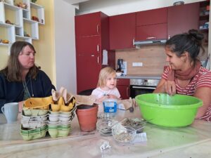 Gemeinsam mit Kinder und Eltern wurden Samenbomben gebastelt – kleine Erdkugeln voller Blumensamen, die später Wiesen Gärten und Balkone zum Blühen bringen. Es wurde gematscht, gekugelt, gebastelt und gelacht. Ein schöner Gedanke, der weit über das Gärtnern hinausgeht: