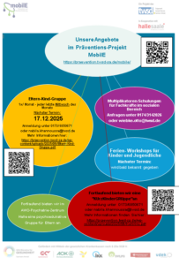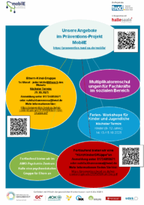 In der Stadt Halle (Saale) findet in Zusammenarbeit mit der Universitätsklinik und Poliklinik für Psychiatrie, Psychotherapie und Psychosomatik der Universitätsmedizin Halle (Saale) sowie des AWO Psychiatriezentrums Halle – Fachkrankenhaus für Psychiatrie und Psychotherapie – ein niedrigschwelliges präventives Angebot statt, um psychisch erkrankte Eltern und ihre Kinder zu erreichen. Dies wird neben Gruppenangeboten für Eltern, Kinder und Jugendliche auch über Schulungen interner und externer Fachkräfte realisiert, um eine nachhaltige Stärkung Kinder psychisch erkrankter Eltern umzusetzen.